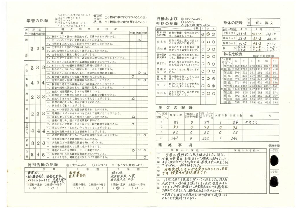 前編の小学5年の通知表は、いかがだったでしょうか?